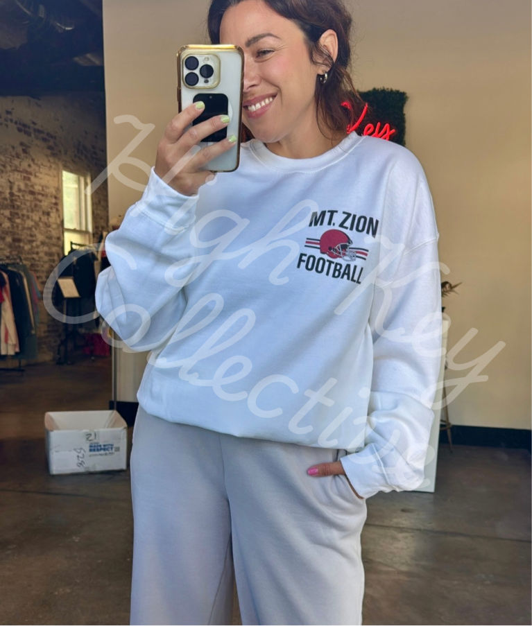 The hoodies and crewneck sweatshirts are done on Gildan with a unisex fit! Featuring bold designs on both the front and back with a football graphic.