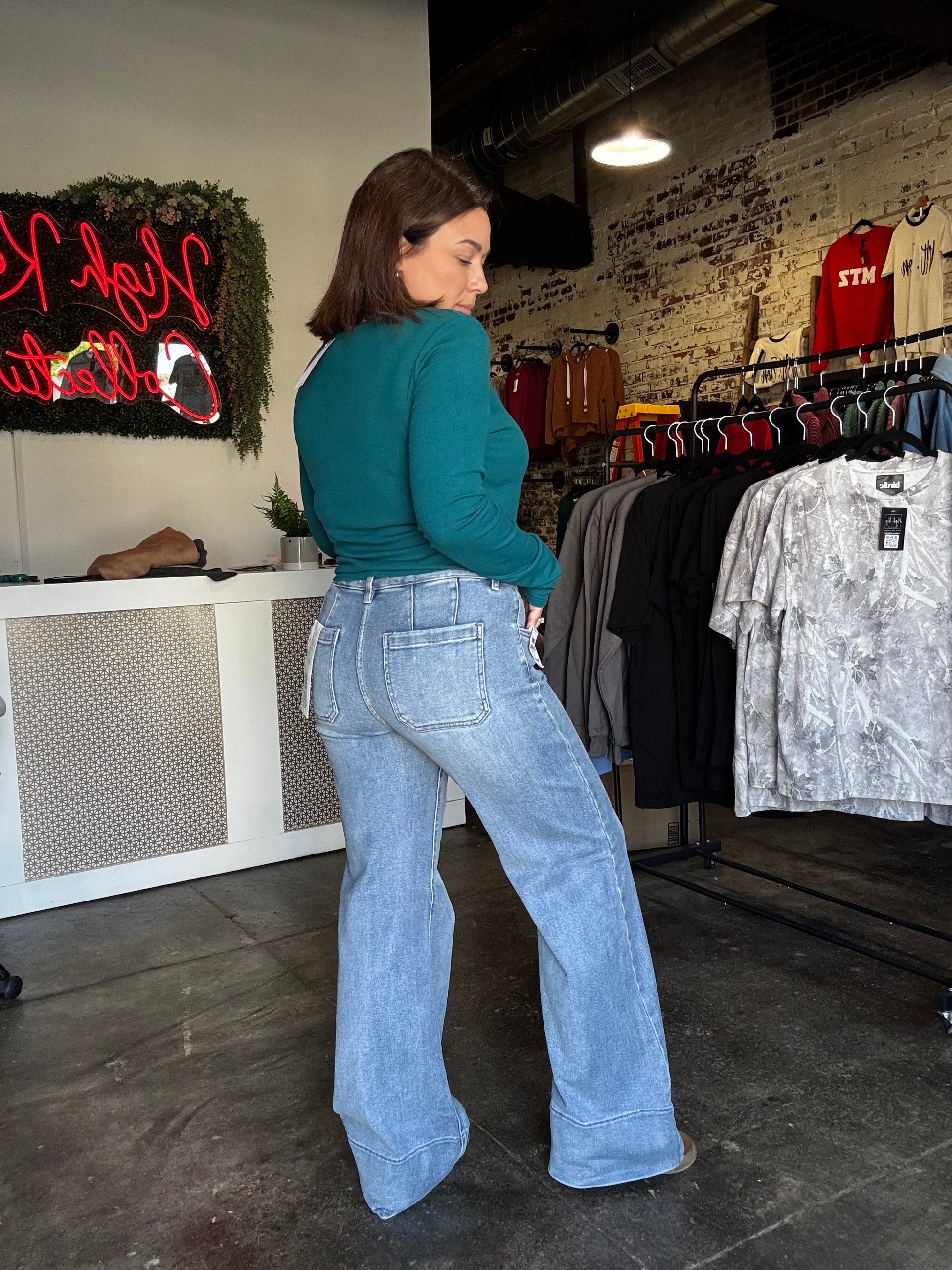 Heather is wearing a size 5 and normally wears a size 7. Fantastic stretch and amazing tummy control!