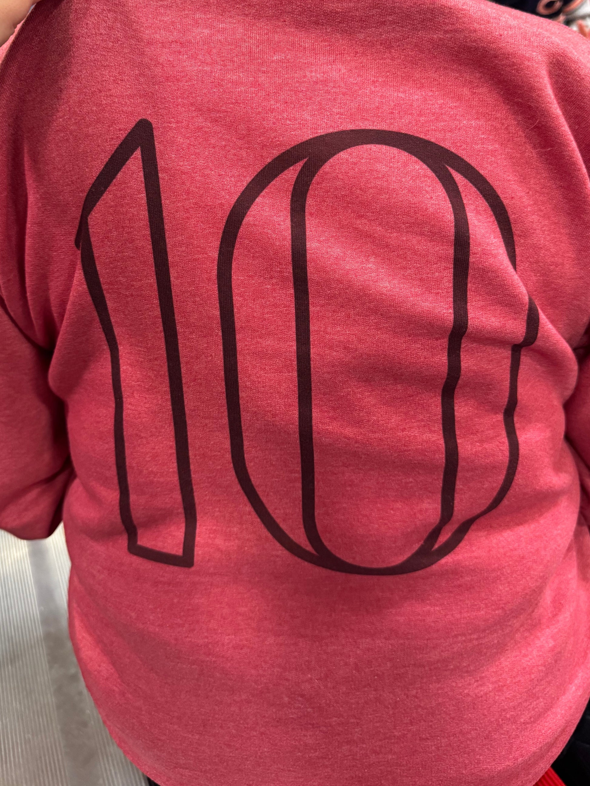 This sublimated crewneck sweatshirt is for the parents/loved ones of hard working students! Heather is wearing a medium. It is a true to size unisex fit!