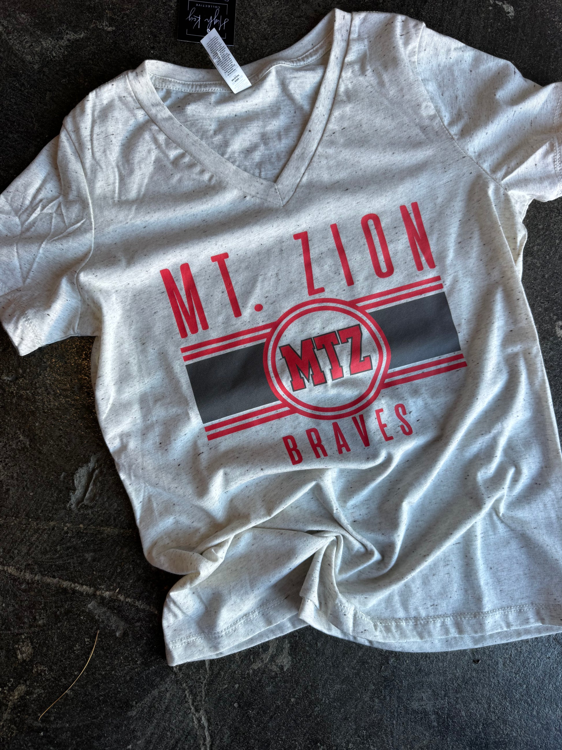 Bringing you a lovely triblend , light weight Bella canvas V-neck Tee to give you that feminine look rather than unisex! Add a black cardigan over top and you are looking and feeling right for the cold weather while still representing your Mt. Zion Braves boldly!