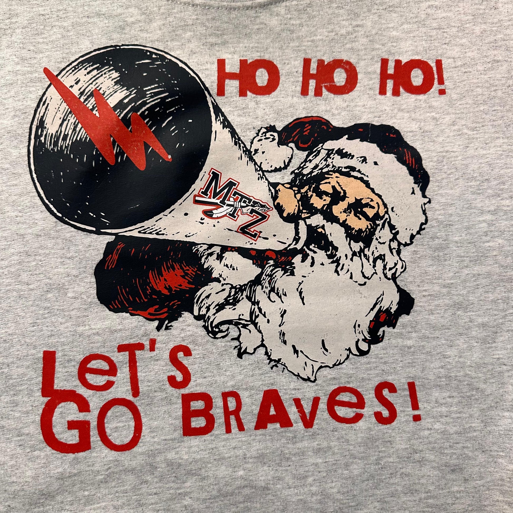 Santa’s swapping his sleigh bells for school spirit! Cheer on the Braves in cozy holiday style with this vintage-inspired “Ho Ho Ho! Let’s Go Braves!” sweatshirt. Perfect for holiday games, school events, or just showing your team pride all season long. Sweatshirt is unisex fit. Model is wearing a medium. For an oversized fit with leggings, size up two sizes