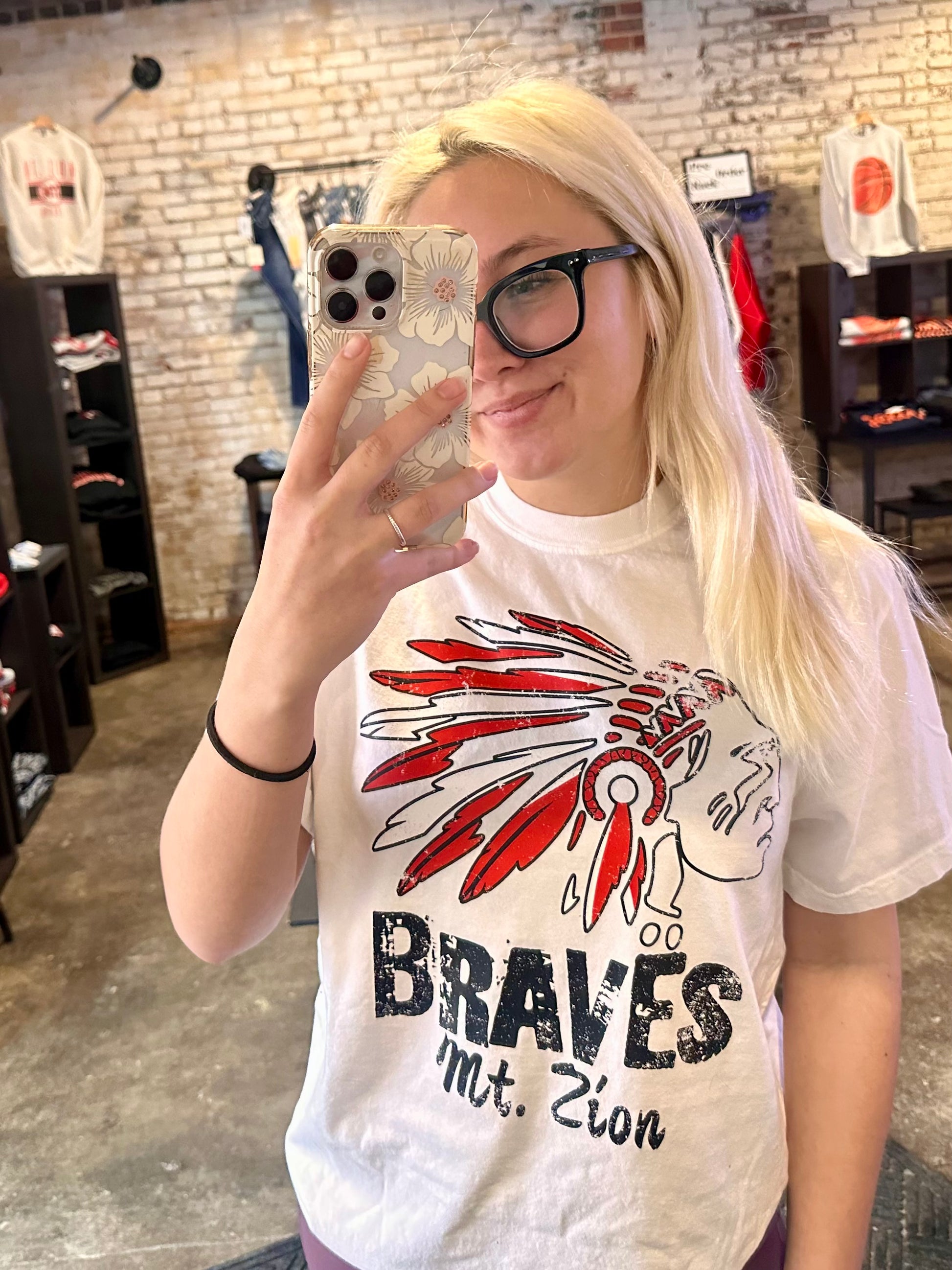 War path is our newest distressed braves design, and we are here for it! Comfort colors is 100% ringspun cotton pre-shrunk and true to size. Aubrey is normally a small but is wearing a medium here!